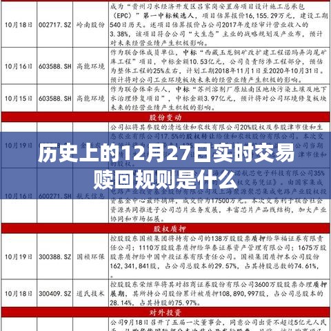 在金融市场的发展历程中,交易规则随着时代变迁而不断演变,作为投资者,了解历史上的交易规则对于我们理解金融市场的演变具有重要意义,本文将聚焦于历史上的12月27日,探讨当时的实时交易赎回规则。