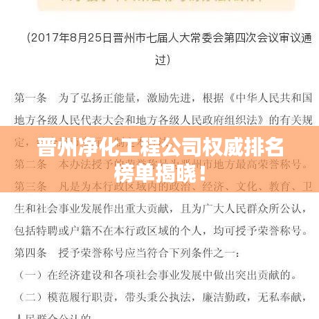 随着科技的发展和环保意识的提高,净化工程行业逐渐崭露头角,晋州作为河北省的一个重要城市,其净化工程行业的发展也备受瞩目,本文将探讨晋州净化工程公司的排名及相关情况,为读者提供有价值的参考信息。