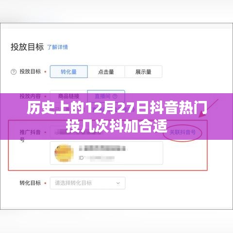 随着移动互联网的普及,抖音等短视频平台已经成为人们日常生活中不可或缺的一部分,许多历史事件和时刻通过抖音等平台的传播,得以重现生机,本文将聚焦于历史上的12月27日这一特殊日子,探讨在抖音平台上投放热门内容时的抖加推广策略,分析投几次抖加合适。