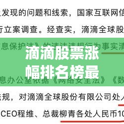 总之,滴滴股票在最新涨幅排名榜上的表现值得肯定,但投资者在投资过程中仍需关注潜在风险,谨慎决策。