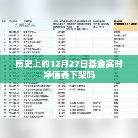 随着金融科技的飞速发展和大数据时代的到来,基金实时净值已成为投资者关注的焦点,每年的12月27日,基金市场的动态都会引起广大投资者的关注,历史上的12月27日基金实时净值是否会因为某种原因而下架呢?本文将就此话题展开讨论。