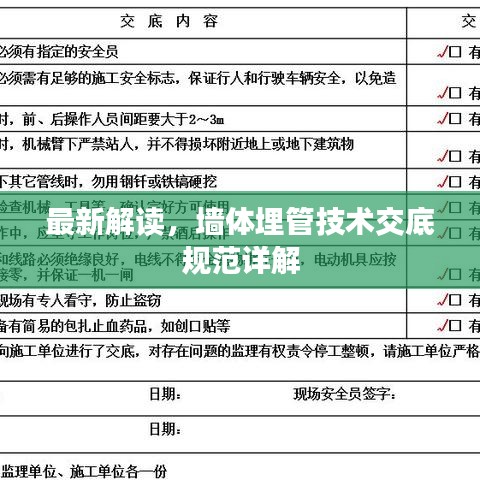 随着建筑行业的飞速发展,墙体埋管技术作为现代建筑的重要工艺之一,其应用越来越广泛,为确保工程质量与施工安全,对墙体埋管技术交底规范进行及时的更新与解读至关重要,本文将围绕“墙体埋管技术交底规范最新”这一主题,详细介绍相关规范内容,帮助从业者更好地理解和掌握。