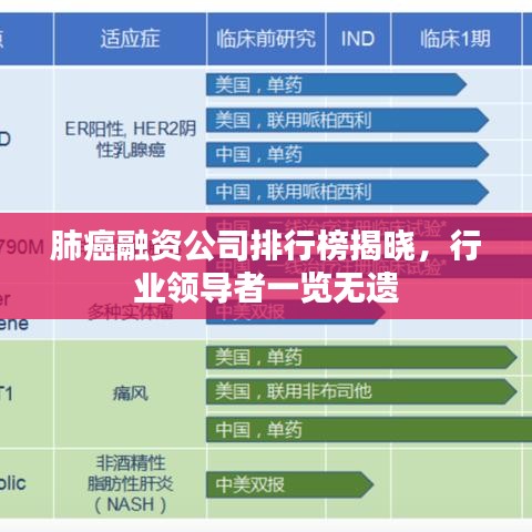 肺癌作为威胁人类健康的重要疾病之一,其治疗与预防一直是全球医疗领域的焦点,随着医疗技术的不断进步和资本市场的发展,肺癌融资公司在筹集资金、研发新药及提供治疗服务等方面扮演着日益重要的角色,本文将为您揭示肺癌融资公司的排名,带您了解行业领导者。