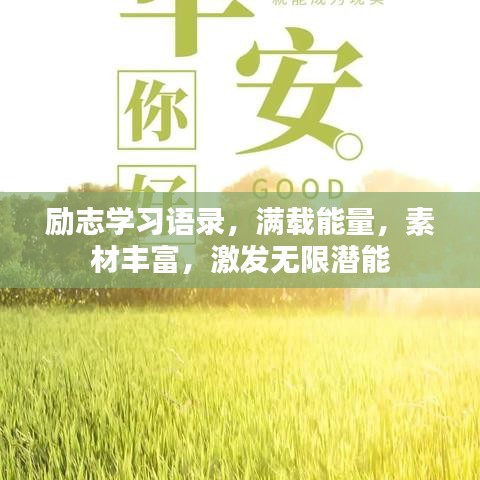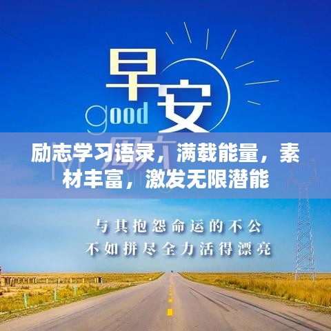 在人生的旅途中,学习是我们不断前行的动力,励志学习语录,像明灯一样照亮我们前行的道路,给予我们力量和勇气,本文将为你呈现一系列励志学习语录,素材丰富,充满正能量,激发你无限的学习潜力。
