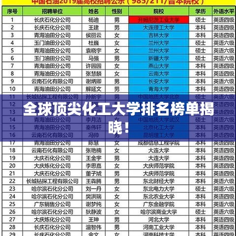 随着全球化工行业的蓬勃发展,越来越多的学子对化工专业产生了浓厚的兴趣,对于那些有志于在化工领域深造的学生来说,选择一所世界知名的化工大学是实现职业梦想的关键,本文将为您介绍一些在全球化工领域排名前列的大学,这些大学在化工教育、科研以及产业创新方面均表现出卓越的实力。