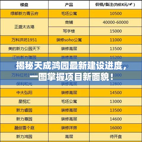 随着城市化进程的加快,房地产项目的发展日新月异,作为备受关注的天成鸿园,其最新进度自然吸引了无数目光,本文将带您一探天成鸿园最新进度图片查询,揭开项目新面貌的神秘面纱。